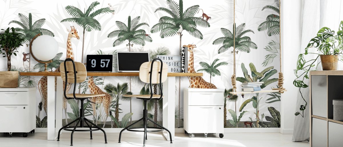 A great backdrop for your baby's nursery, this giraffe wallpaper will transport you straight to the wilds of Africa! We think that this nursery wallpaper would look fabulous placed on the wall next to their crib so that they can look up at their animal friends when they doze off. Pair it with white and natural wooden decor and incorporate giraffe plush toys and faux tropical plants in the room as well.