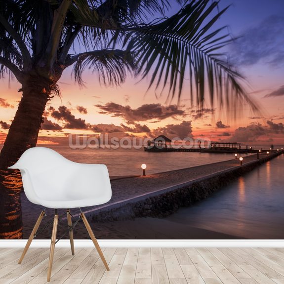 Calming and relaxing, this gorgeous Maldives Beach Trees at Sunset wall mural will make you feel serene as soon as you step into the room.