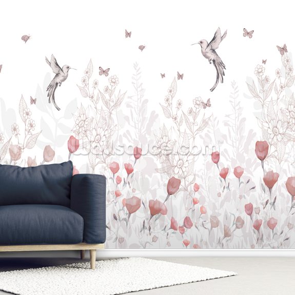 Featuring beautiful delicate pink florals and playful birds, this cute mural by Kelly Kratzing will make a great feature wall in any bedroom or nursery. Simply enter your dimensions, choose your material and install as simply as wallpaper.