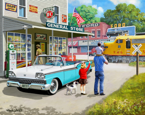 Born in Yorkshire, England, Kevin Walsh specialises in creating art that brings bygone times back to life. And luckily for us, his wallpapers are exclusive to Wallsauce.com! You won't find them anywhere else! Enjoy quaint village scenes, Spitfires roaring through the clouds, sunny days by the seaside, VE Day street celebrations and more. Inspired by the years between the 1920's and 1960's, Kevin's nostalgic designs are certain to bring back those warm, happy memories.