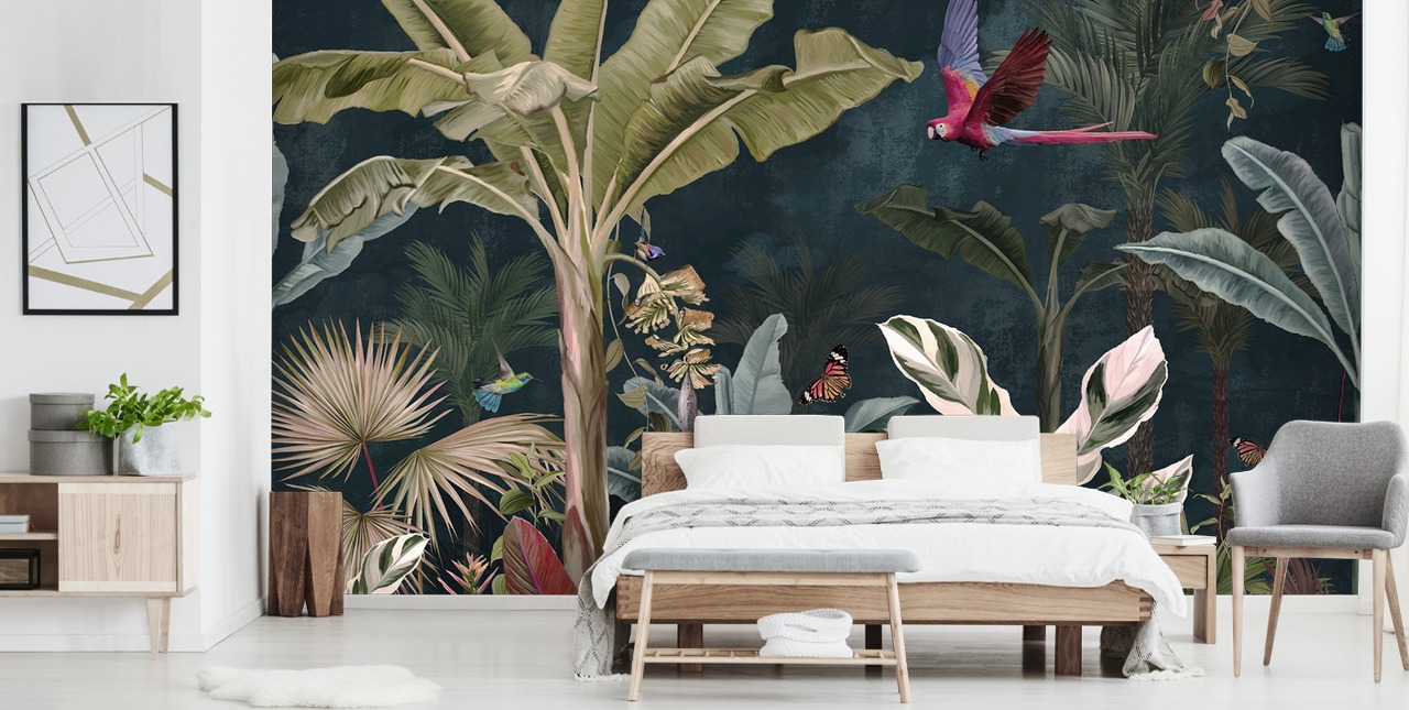 A jungle wallpaper mural can infuse any space with personality and vibrancy. The Parrot Flying Through the Jungle mural is a simple but effective way of transforming a plain wall into something spectacular.