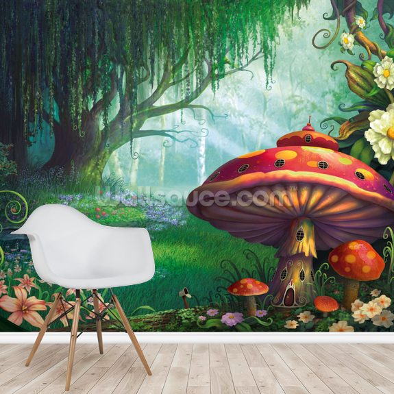 Do they have dreams of being able to live within a toadstool? Then this wallpaper will help them to live out their dreams. They can walk amongst the bluebells and underneath the willow tree in this fairytale wall mural scene.