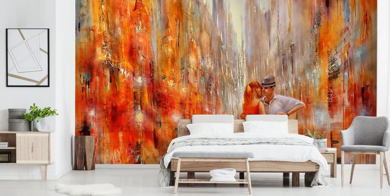 If you’re looking for an artistic and romantic feature wall for your bedroom, then this Salsa wall mural is perfect. With gorgeous rusty reds and warm oranges, this abstract wallpaper painted by Annette Schmucker will create the ideal ambience for your master bedroom.