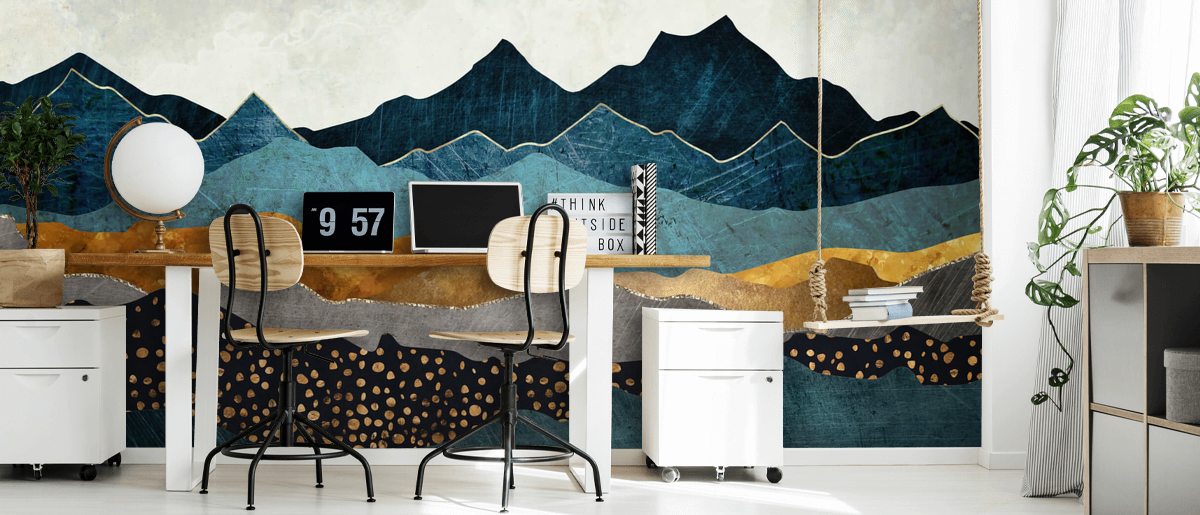 This fabulous abstract mountain wallpaper would make a gorgeous feature wall in any room. However, we think that it would make an amazing living room wallpaper feature wall! Pair this fantastic designer wallpaper with dark, mahogany wood furniture to mirror the dark, nutty brown shades in this design. Choose brassy gold lights and ornaments to mirror the gold colours as well.