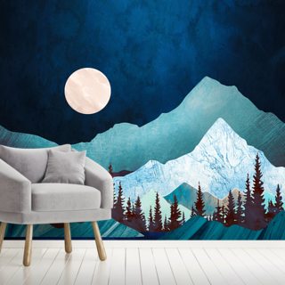 Why not install this forest wallpaper in your living room? Pair it with a range of navy-blue, forest-green, off-white and gold furniture to mirror the tones in this beautiful tree wallpaper. This blue wallpaper is available to be printed on classic or premium paste the wall or textured peel and stick.