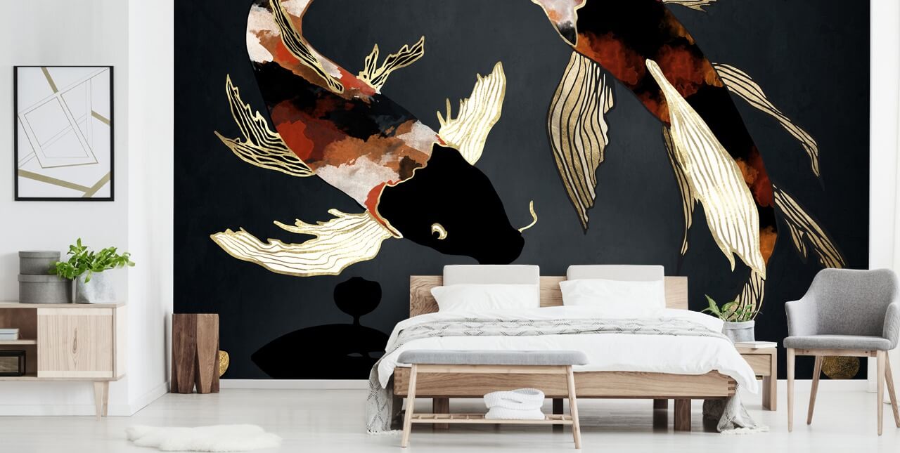 Adorn your walls with this stunning dark Metallic Koi IV wallpaper by SpaceFrog Designs. Custom-made to fit your wall dimensions!