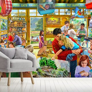 In this wall mural collection by Steve Crisp, you will find lots of engaging scenes from some of your favourite shops.