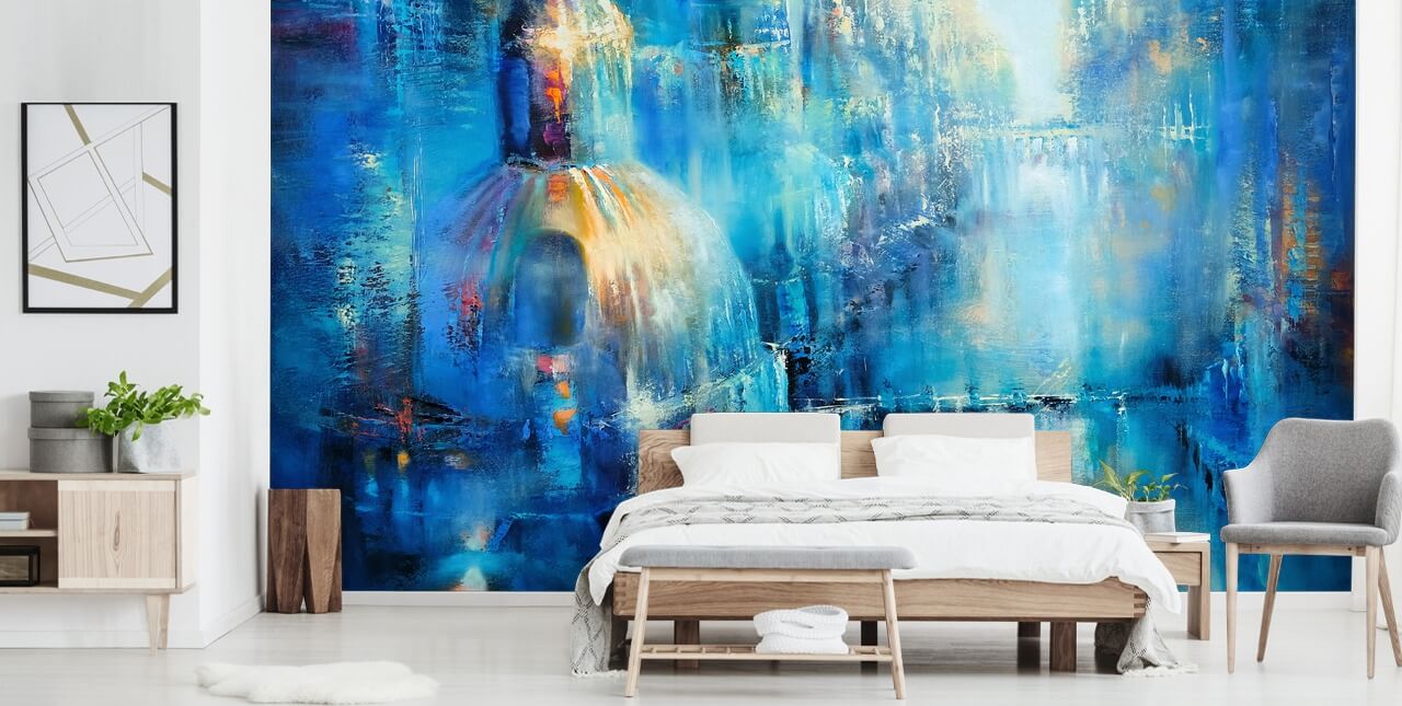 If you would like to buy this quaint abstract painting of the old side of a city, then all you need to do is give us a call or fill out the order form on this page. We ask for your wall’s dimensions as well as your choice of wallpaper material. We have classic or premium paste the wall or textured peel and stick for you to choose from. Paste the wall comes with a FREE paste that you literally place onto the wall before applying the panels. Peel and stick is self-adhesive (no paste required) and is great for renters because it won’t damage the wall when you need to peel it off.