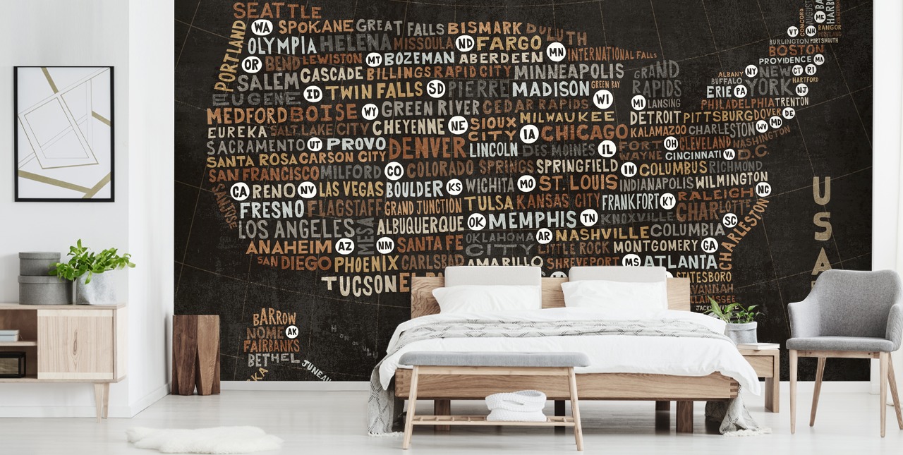 Show your pride for the US with this awesome US City Map mural designed by Michael Mullan. Custom-made to fit the wall.
