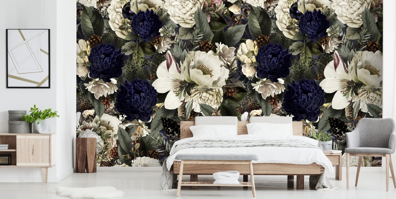 Opdater dit hjems interiør med dette målrettede Midnight Bouquet vægmaleri.