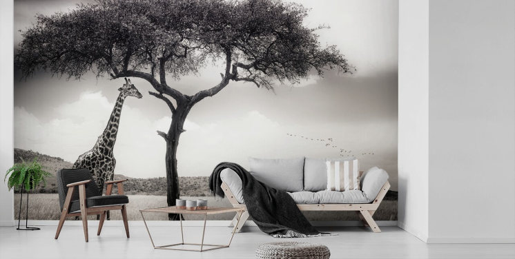 Sort og hvid Giraf Landskab Baggrund