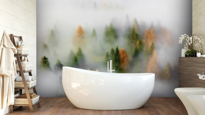 vintertåge over træer vægmaleri