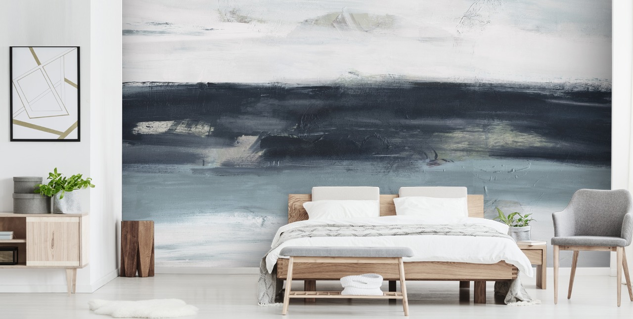 Med en blanding af marineblå toner giver dette abstrakte vægmaleri dit opholdsrum et kunstnerisk præg, der virkelig skiller sig ud. Vores fototapeter er ikke bare almindelige vægmalerier; de udtrykker kreativitet, omhyggeligt udformet til at fange og inspirere, hvilket giver et indtryk af et ekspansivt