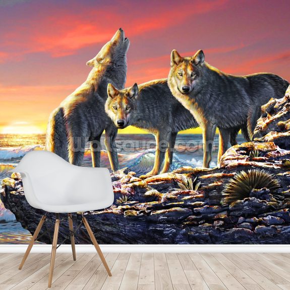 En smuk solnedgang, rullende bølger og en smuk pakke ulve, hvad mere kan du ønsker, når det kommer til ulv tapet?