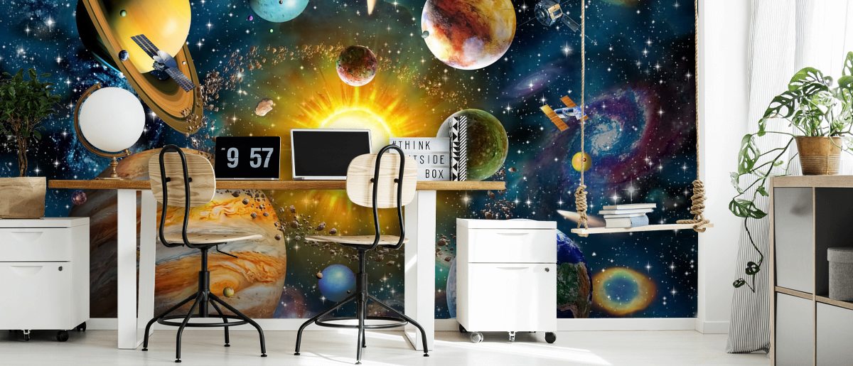 Træd ud i rummet med vores skræddersyede Our Solar System tapet. Leveres i paneler og leveres med instruktioner.