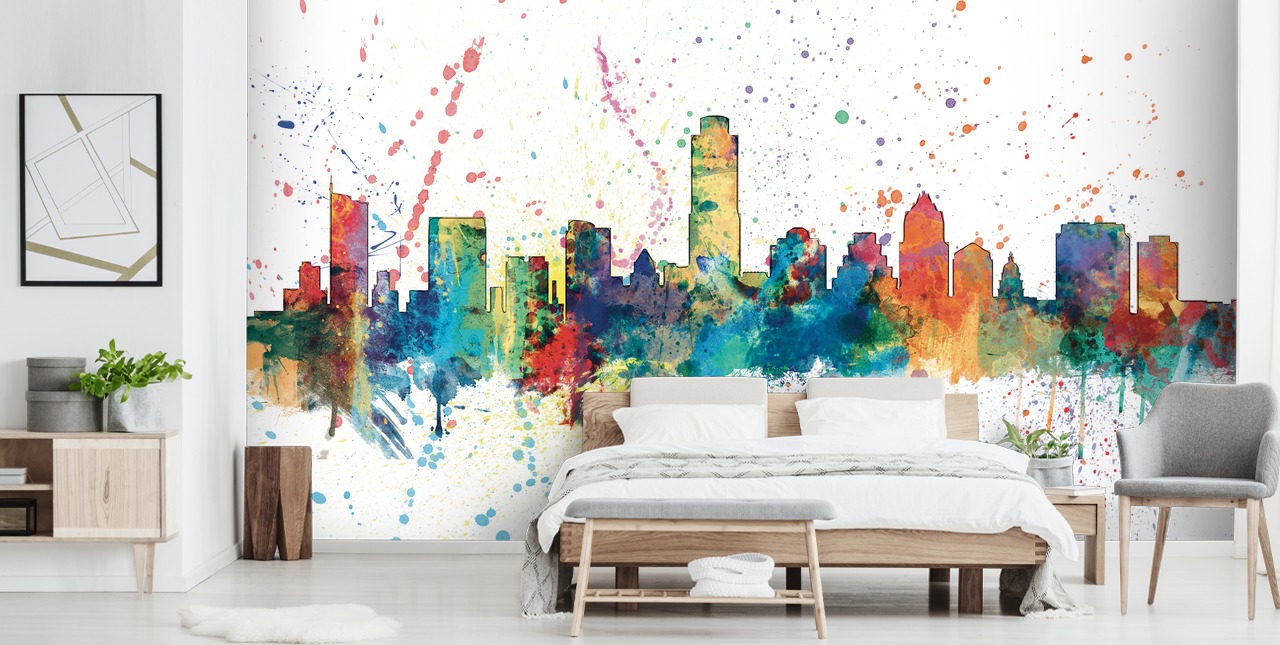 Bring Austins skyline ind i dit hjem eller kontor med dette farverige vægmaleri, der indeholder alle byens ikoniske vartegn. Perfekt til indfødte i Austin eller enhver, der nu bor i udlandet, men savner deres tid i Texas, er dette tapetmaleri en iøjnefaldende måde at vise gæsterne, hvor meget du elsker byen.
