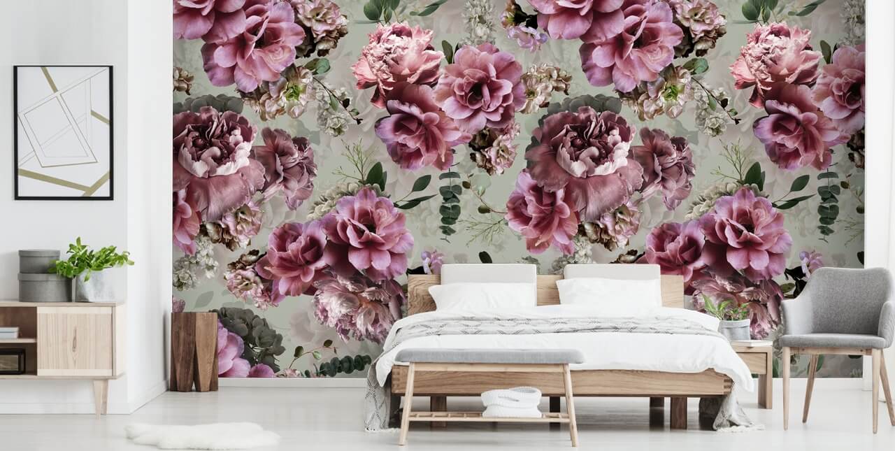 Placer denne fantastiske lyserøde blomster tapet i dit soveværelse for en smuk, rolig og romantisk atmosfære. Mal de omkringliggende vægge i en salvie-grøn tone svarende til den, der anvendes i designet. Spred pink og grønt værelse tilbehør i hele rummet.