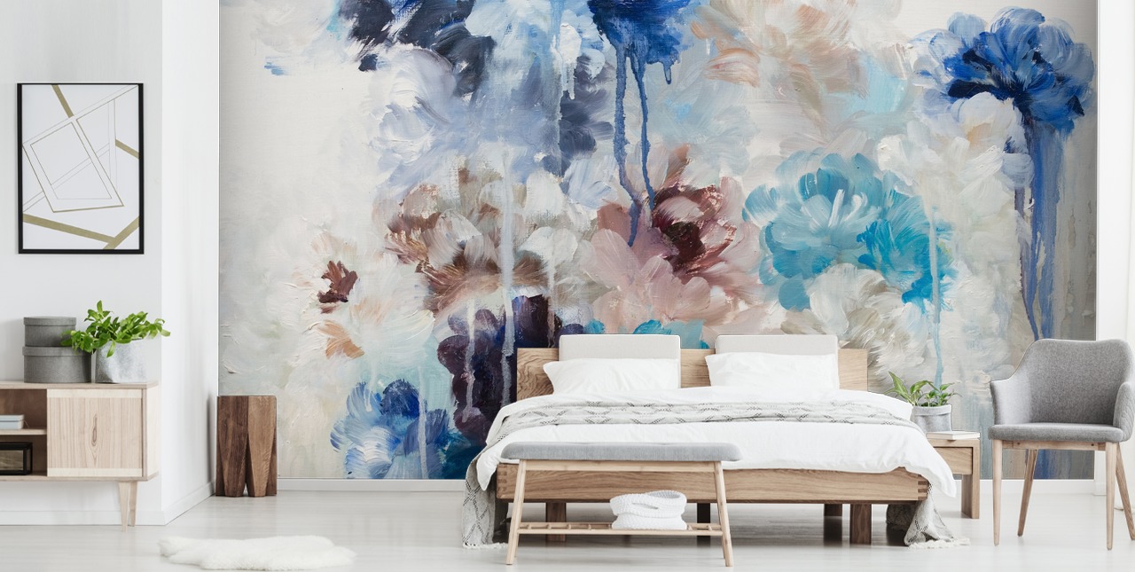 Bring levende design til dit hjem med dette Blue Bouquet-vægmaleri af Rebeca Lopez Gonzalez.