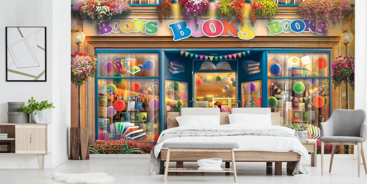 Books Books Books er et farverigt og charmerende facadetapet fra Eduard, der er ideelt til plejehjem.