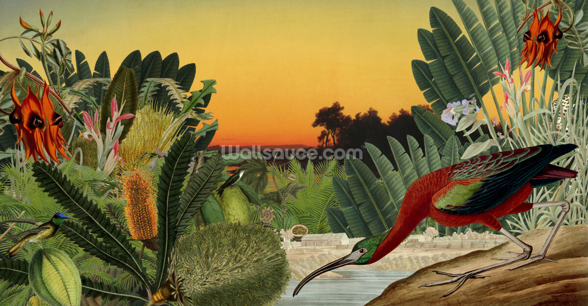 Pardette eksotiske fugletapet med vintage valnødtræmøbler for at få de mørkere toner frem i designet og spejle æraen med disse antikke illustrationer. Dernæst fejre de dybe rødbrune røde toner fra fuglens fjer og orkideer med en sofa i samme nuance - en betrukket med luksuriøs fløjl helst. Endelig bringe i mere mønster: en zig-zag sort og hvid tæppe, en tiger print lampeskærm og mere...
