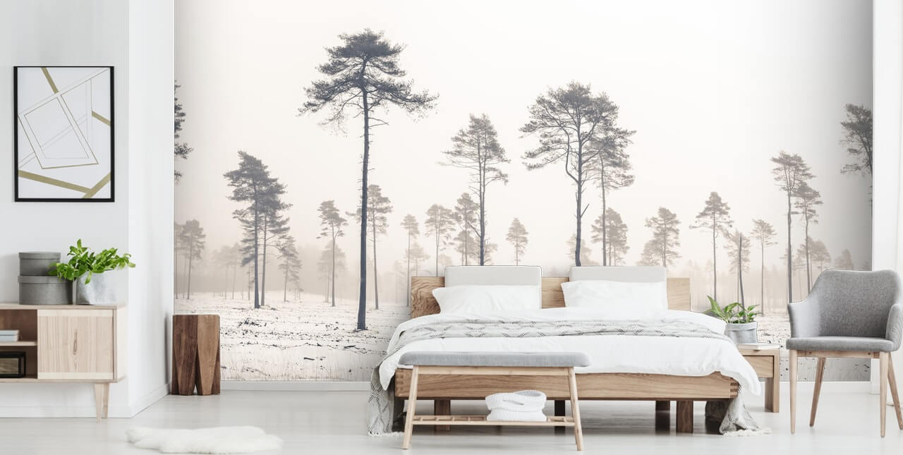 Beundre det smukke tæppe af frisk sne, der dækker skovgulvet, og nyd dette vinterlandskab i ethvert rum i dit hjem. Stil med tartanstoffer og et monokromt farveskema for et sammenhængende look, der føles hyggeligt og moderne.