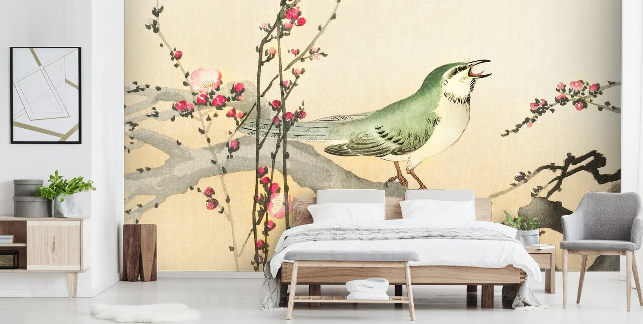 Elsker naturen? Vil du have indretning, der afspejler din passion for orientalsk indretning? Så ser ikke længere end denne smukke Songbird og Plum Blossom tapet vægmaleri. Et maleri af Ohara Koson skildrer en sangfugl hviler blandt en Sakura gren, denne antikke fugl tapet er sikker på at bringe en følelse af ro samt skønhed til dit hjem.