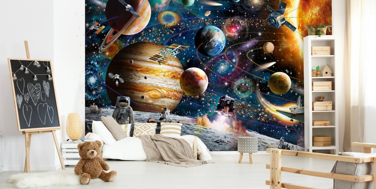 Rejs til det ydre rum med dette fantastiske Space Odyssey vægmaleri af Adrian Chesterman! Lys i farver og med smukke detaljer, du vil virkelig føle, at du lige er trådt ud af et rumskib! Fra en overflod af planeter, satellitter og astronauter vil dette smukke rumtapet sætte alles fantasi i brand, uanset om du er 4 eller 40 år gammel!