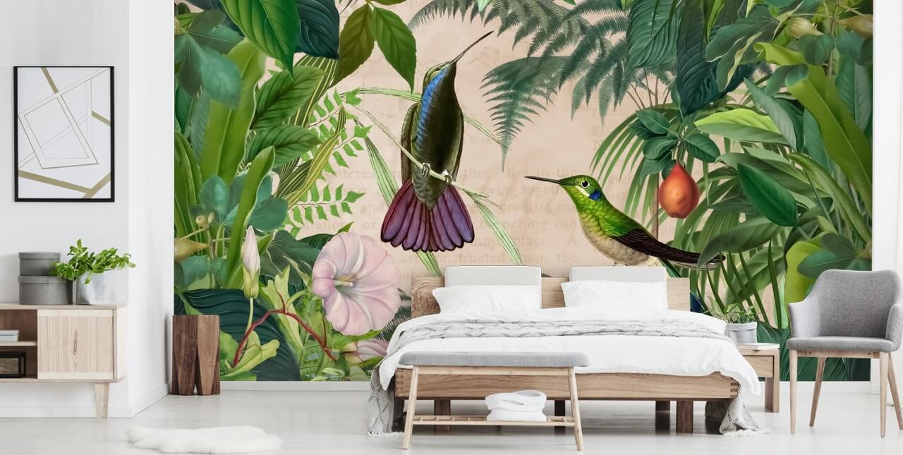 Nyd denne smukke tropiske Hummingbird Jungle tapet vægmaleri.