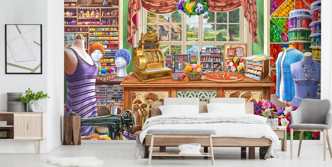 Omdan ethvert rum med denne indviklet detaljerede Wool Shop tapet. Skræddersyet til at passe perfekt til din væg.