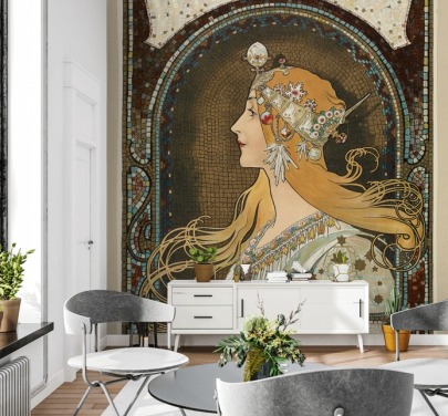 kunsttapet vægmaleri kaldet Pige med perleørering af Vermeer til soveværelser, stuer og køkkener
