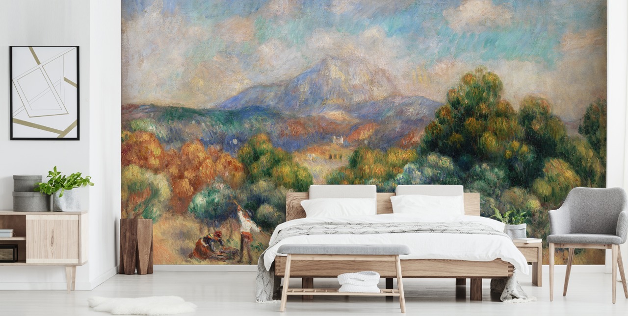 Forvandl enhver almindelig væg til et spektakulært hjem for kunst med vores Mont Sainte-Victoire tapetmaleri.