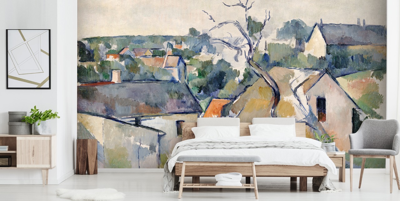 Tilfør skønheden i Paul Cezannes malerier i din boligindretning med Rooftops tapetmaleri.