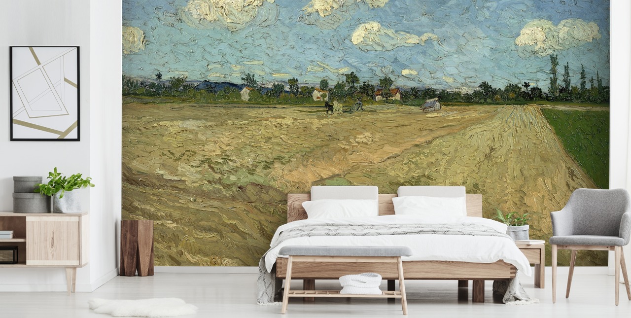 Opret en stilfuld og spektakulær accentvæg i dit hjem med et kunsttapetmaleri. Oplev Van Goghs 'Det pløjede felt'.