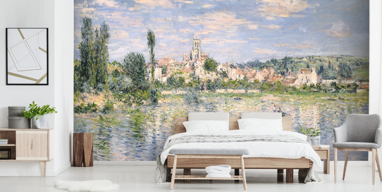 Leder du efter en fantastisk accentvæg? Vælg Monets Vetheuil in Summer tapetmaleri for at tilføje farve og tidløs raffinement.