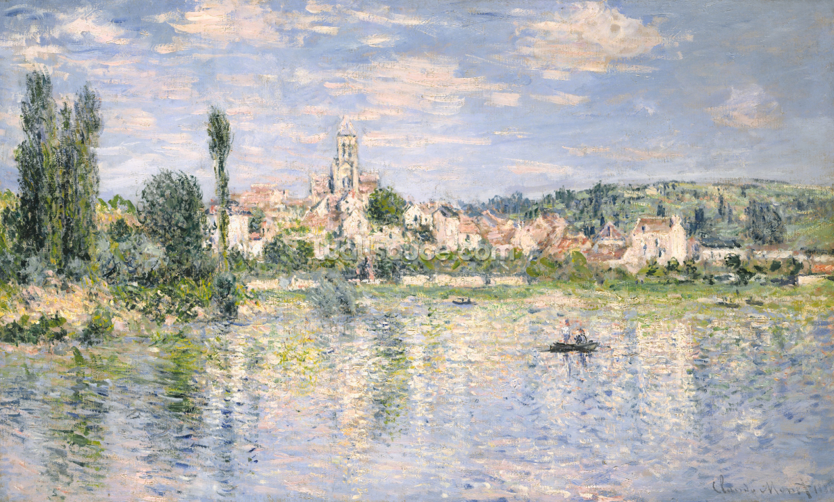 Monets Vetheuil om sommeren fanger det frodige, livlige landskab i det franske landskab i de varme måneder. De lyse, livlige farver og bløde penselarbejde bringer sæsonens skønhed til live og fylder ethvert rum med en følelse af friskhed og ro.