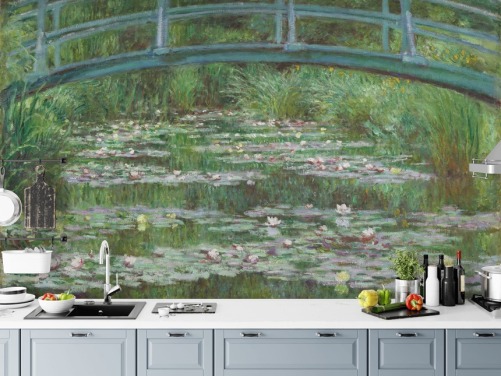 kunstvægmaleri kaldet Bridge over a Pond of Water Lilies af Monet til stuer og soveværelser
