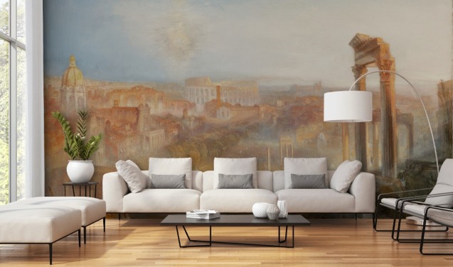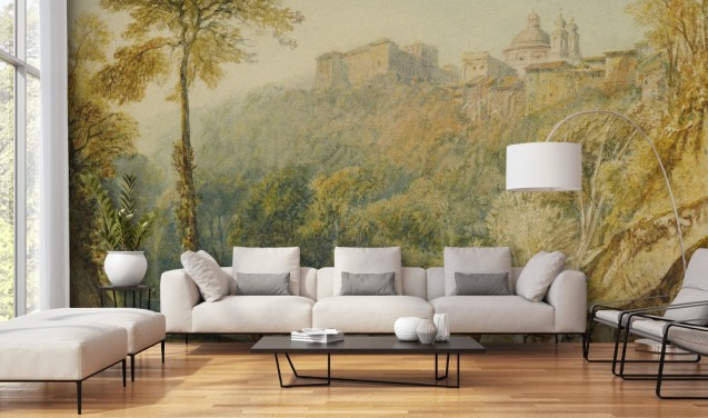 kunsttapetmaleri kaldet Saumur fra Ile d'Offart af J. M. W. Turner til stuer og hjemmekontorer