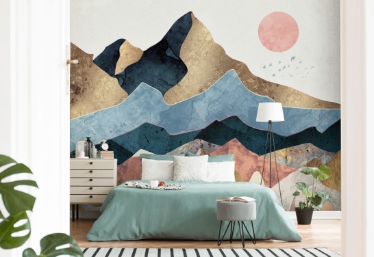 bleg grøn og guld bjerg tapet