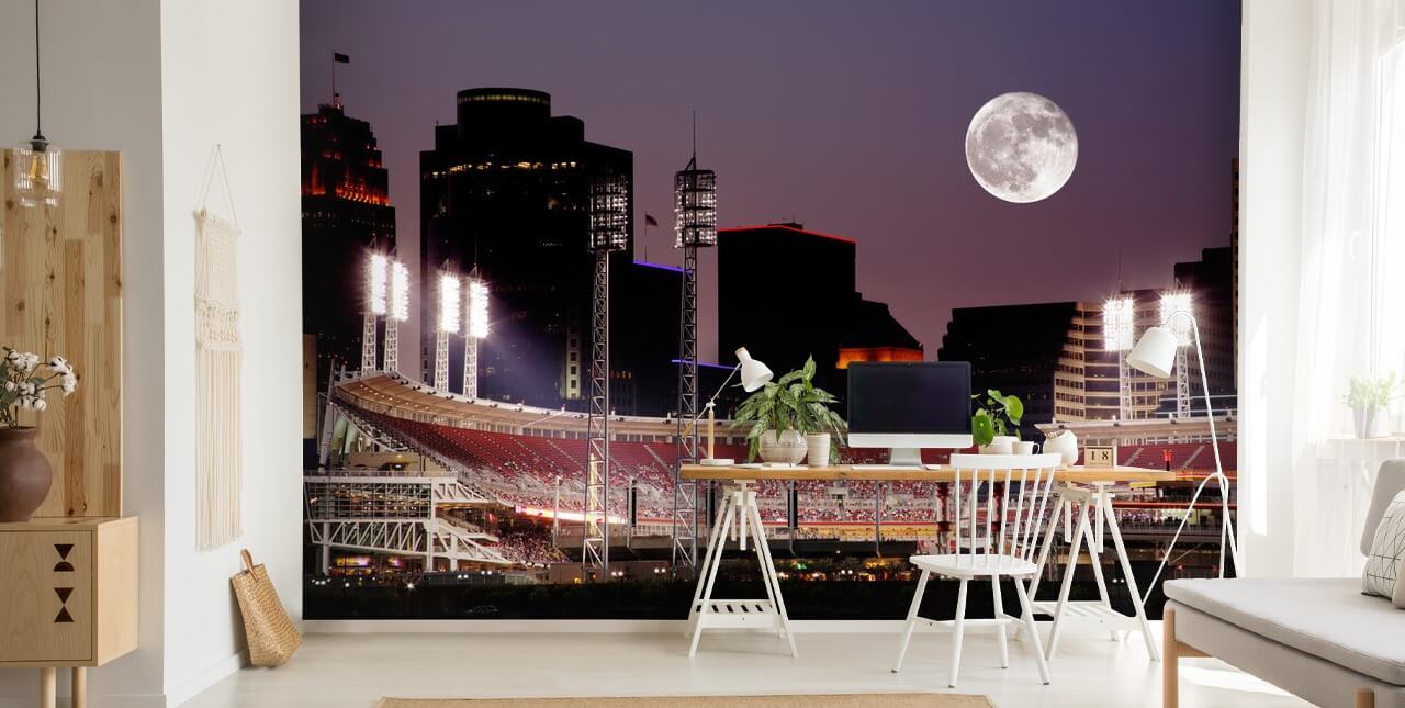 Baseball om natten tapet. Sid under månen med denne skræddersyede, let at installere vægmaleri.