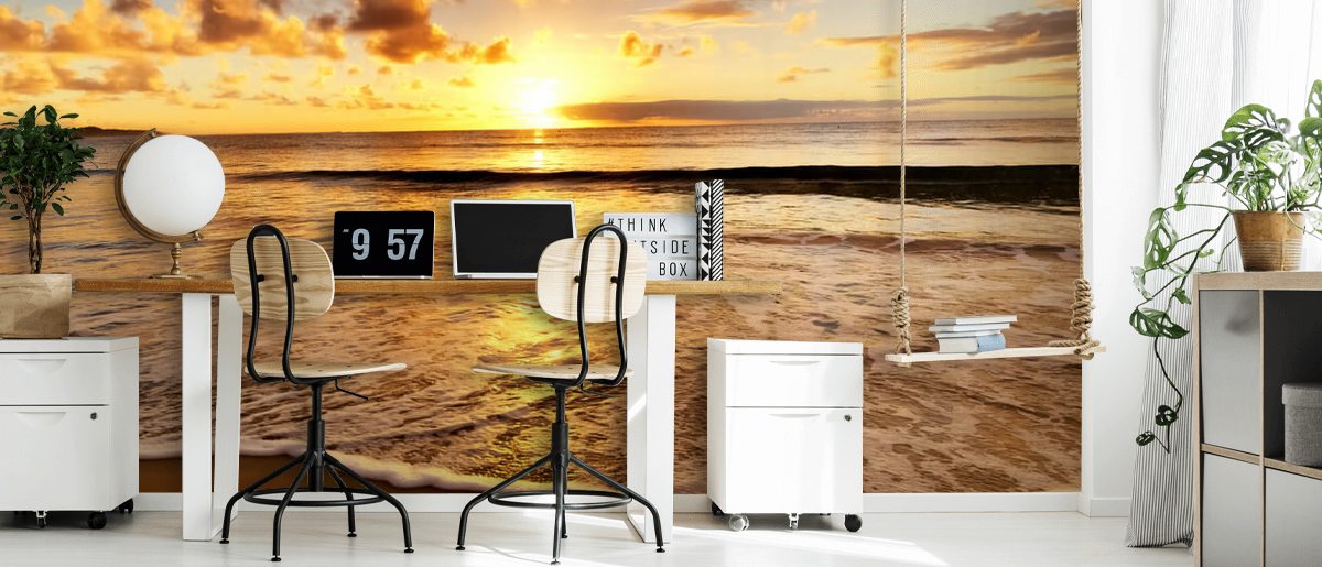 Hvis du vil have et solnedgangsstrandtapet, der får dig til at føle dig rolig, så snart du går ind i rummet, skal du vælge dette smukke Beach Sunset tapet. Med smukke guld-, orange- og gule toner vil dette fantastiske strandmaleri ikke kun se afslappende ud, men vil tilføje en række farver ind i rummet.