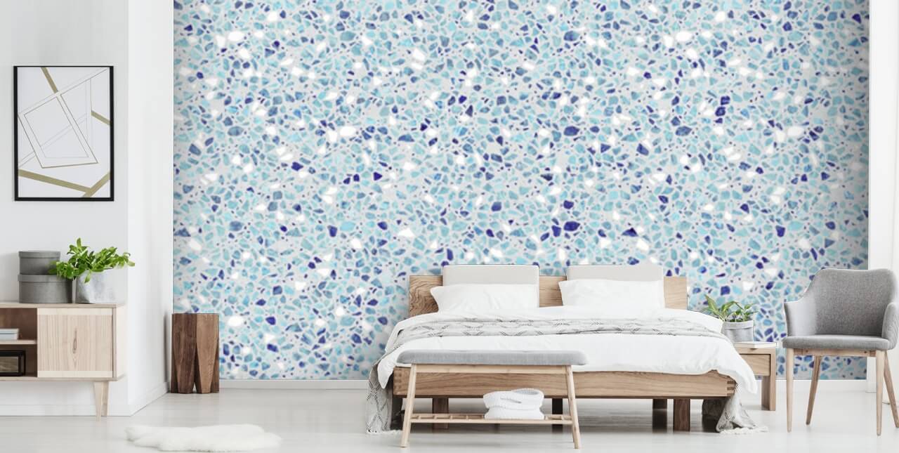 Blå prikker - Terrazzo Vægmaleri