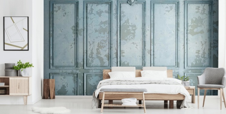 blåt og kobber industrielt tapetmaleri kaldet Industrial Grunge til soveværelser, barer og køkkener