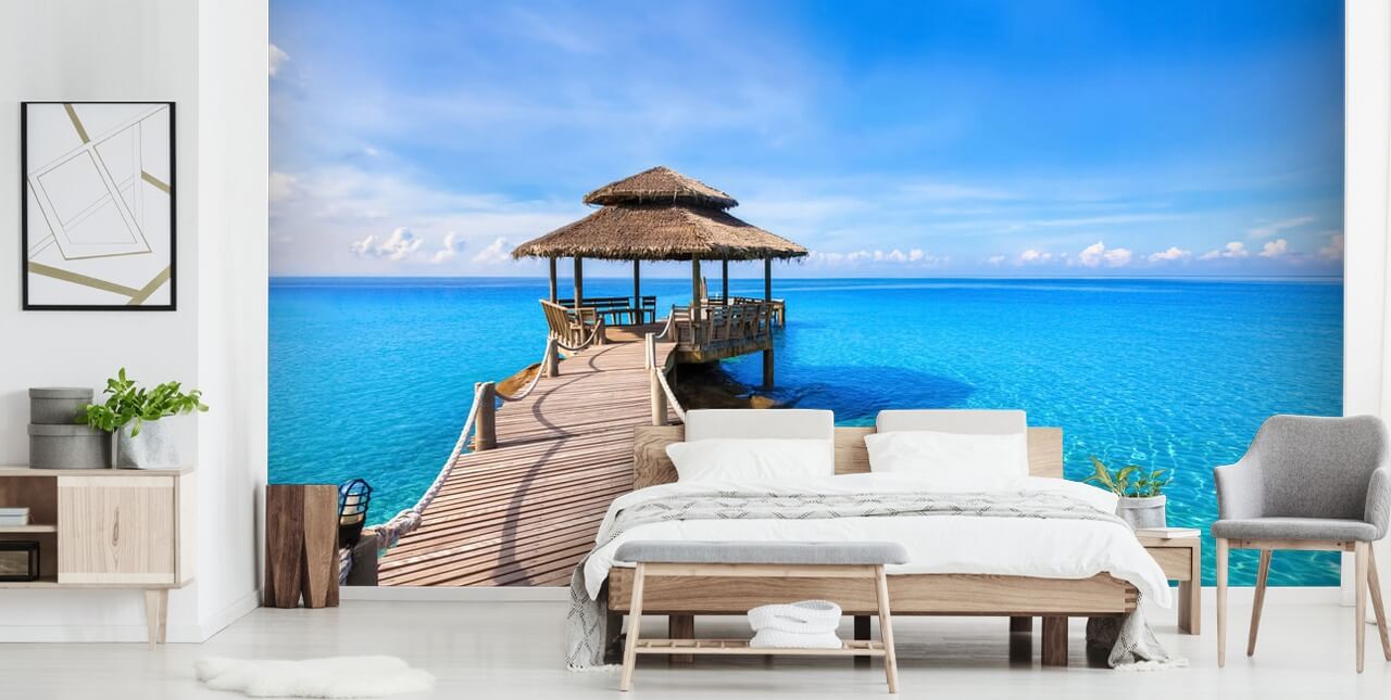 Bedøvelse Boardwalk til Pier Wallpaper Mural fra Wallsauce, vil bringe sol og hav til dit værelse.