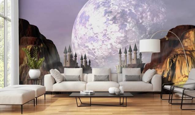 Fra middelalderlige slotte til spektakulære illustrationer af mytiske fæstninger, kan du bringe disse gigantiske stenstrukturer til livet i et stort tapet vægmaleri på din væg.