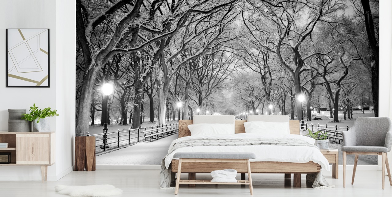 Central Park Covered in Snow Wallpaper Vægmaleri fanger New Yorks berømte park om vinteren dækket af sne.