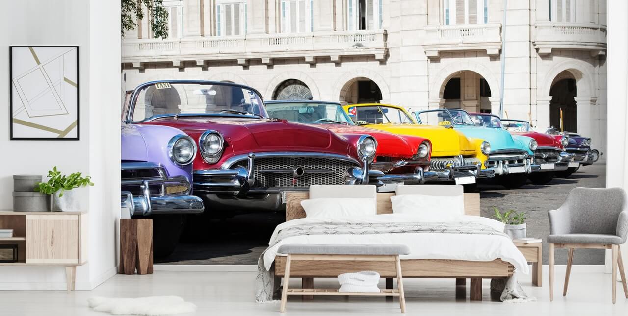 Få den perfekte bilfunktionsvæg med dette lavet til måling af farverige amerikanske klassiske biler tapet.