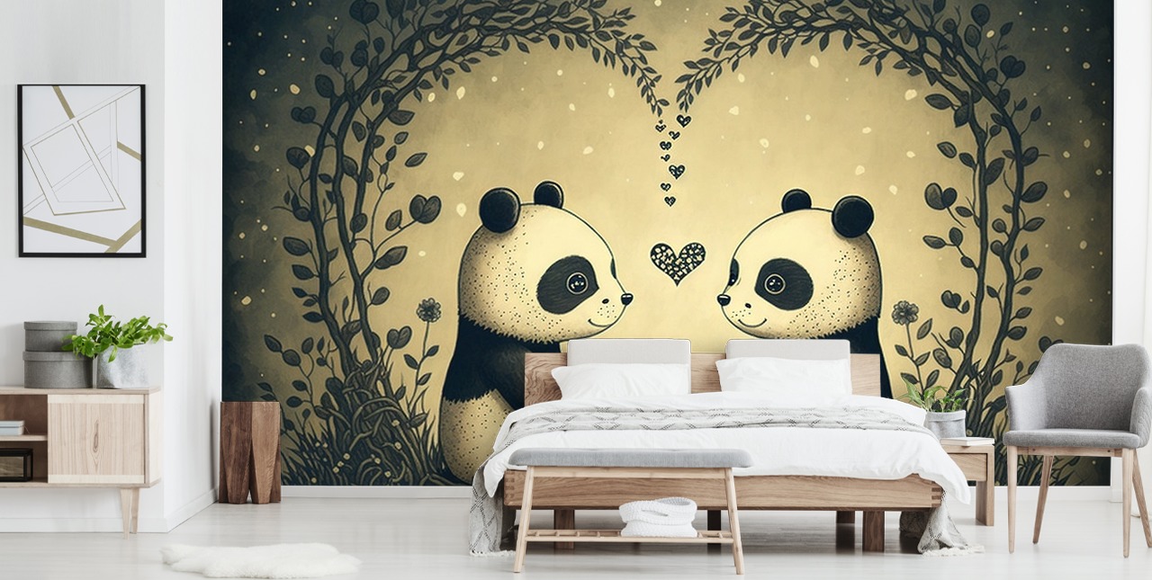 Forvandl dit rum med vores søde Couple of Pandas Wallpaper Mural. Det er det perfekte Panda design til børns soveværelser!