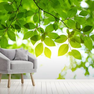 Vi tror, at dette grønne blad tapet ville se fantastisk ud i et soveværelse, placeret bag en seng! Vælg en naturlig træ seng, hvidt sengetøj og skov-grønne scatter puder! Har naturlige træ flydende hylder og male de omkringliggende vægge i en lignende nuance af grønt.