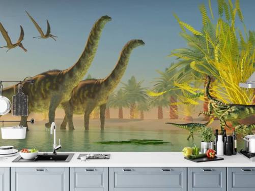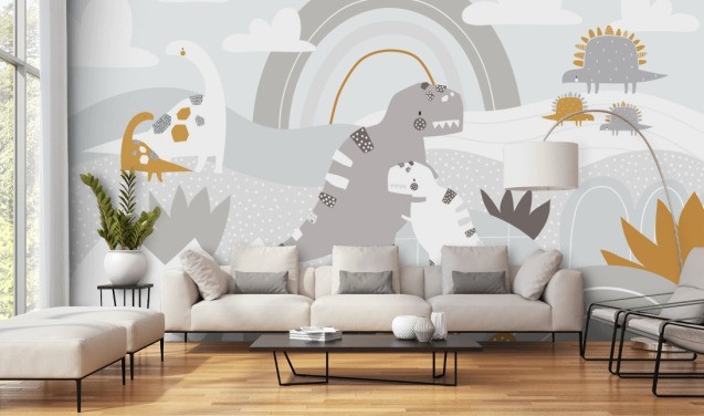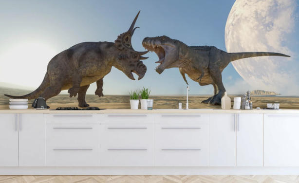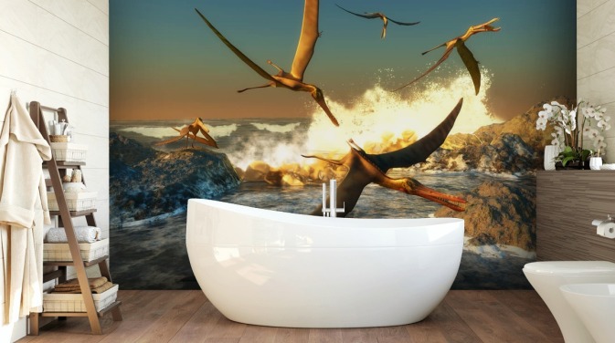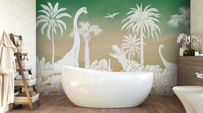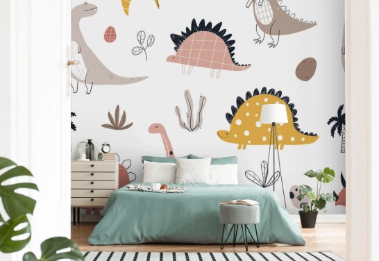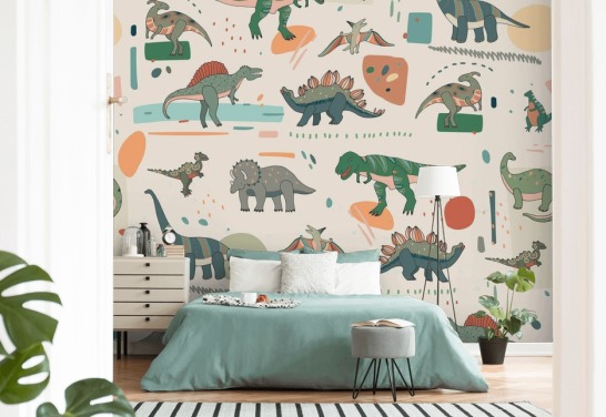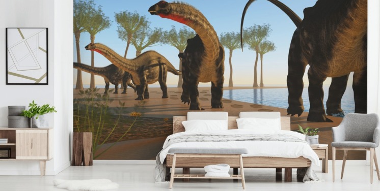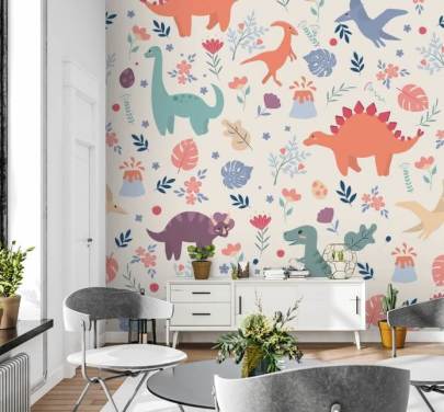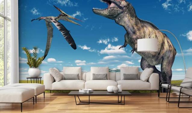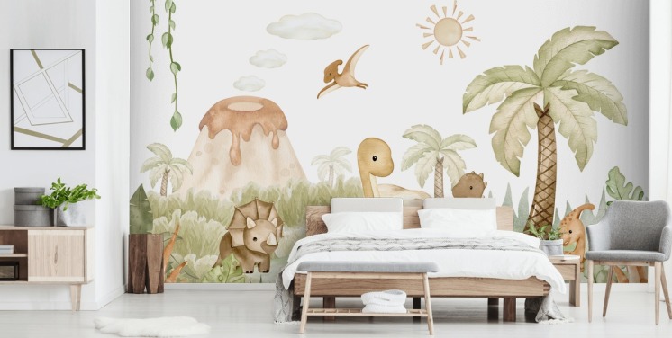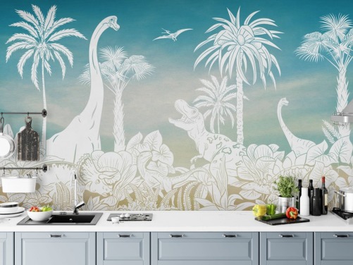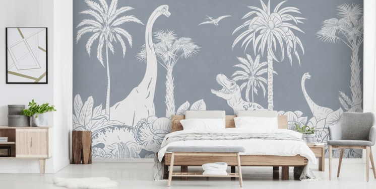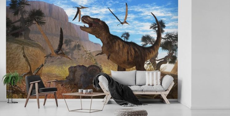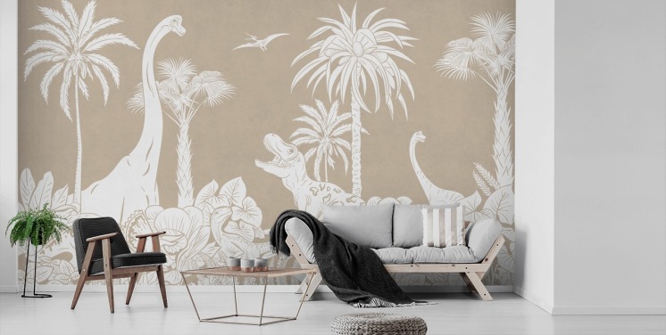 Opret en eventyrlig forhistorisk væg med betagende dinosaurtapetmalerier.