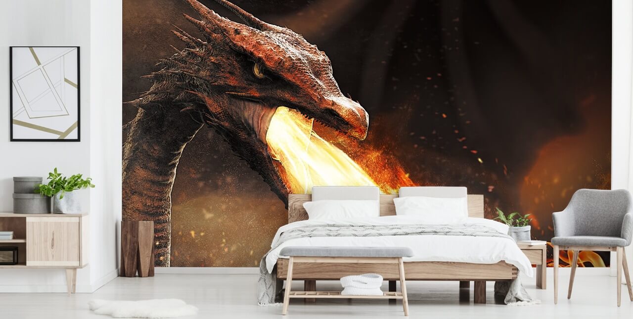 Pryder din væg med denne fantastiske Dragon Fire tapet. Lavet i indsætte væggen eller skræl og stick tapet.
